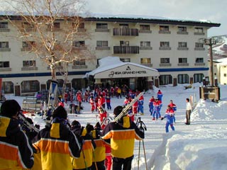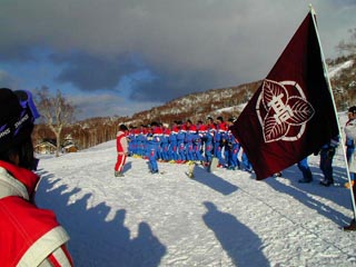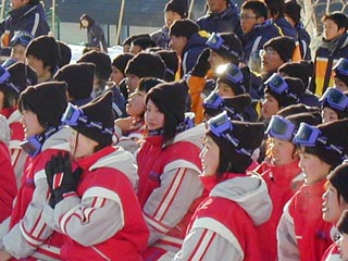 | 30日(火)の記録 午前7:00起床 天候 快晴 気温−10.7°C 予定通り実習と閉講式。18:00夕食。19:00アセンブリー。22:30消灯。 本日も9:30より各班ごとにインストラクターの案内でツアースキーを実施。朝から実 習終了まで青空。奥志賀・焼額方面と東館山・高天原方面に分かれて昨日行かなか った方面にツアースキーを実施。 樹氷が朝日に輝く。白銀のパラダイスとは今日のような日のことか。インストラクター の弁によると、丸1日晴れた日は今年3日しかないとのこと。思えば豪雪の中でやって きた修学旅行も「晴天」というこの上ない幸運に恵まれ3日間の実習もいよいよ終了。 夜はお土産を買ったり帰宅準備をしたりと忙しく過ごしました。 |