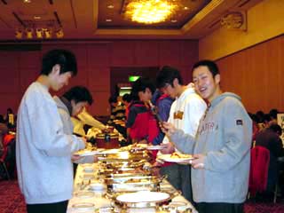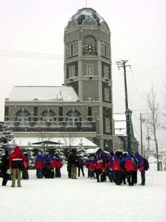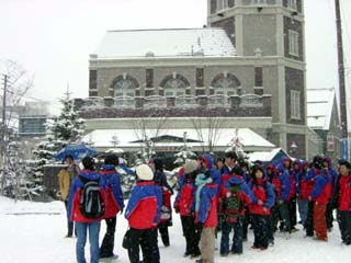 | 28日の記録 28日は道東や秋田地方に大雪警報がでていたので、途中の交通渋滞も考慮して、 日程を20分早めて行動しました。札幌市内見学は、北海道庁舎、北海道大学、時 計台、雪祭りの準備中の大通公園などを車内見学して小樽に向かいました。 小樽での自主研修は、買い物と昼食であっという間に終わってしまいました。 女子はガラス工芸品などショッピングを楽しんでいましたが、男子はもっぱら安くボリュ ウムのある食事を求めて散策していました。 札幌に帰ると雪は少なく、早く戻れたので、ドライブイン休憩でおみやげも買うことが できました。 飛行機は予定通り、JAS668便とANA780便で、大阪伊丹空港に着き、各方面の バスに乗って帰但しました。 1名だけ川西市民病院に行きましたが、診察投薬で熱も下がり保護者のお迎えで無事 但馬に帰りました。 以上、55期生の修学旅行は全員無事終了いたしました。 皆様のご理解とご協力のおかげで思い出に残るすばらしい修学旅行ができたものと 思います。どうも有り難うございました。 |